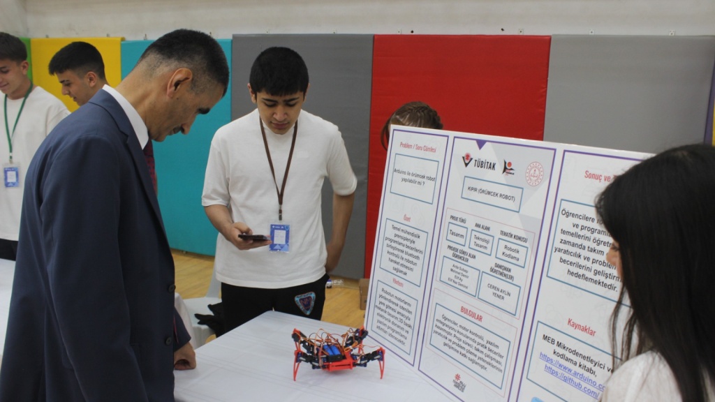 Okulumuzda düzenlenen TÜBİTAK 4006 Sergisi, İlçe Milli Eğitim Müdürümüz Emin ÇIKRIKCI' nın katılımlarıyla beraber açılışı yapıldı.Proje Yürütücümüz Elektrik-Elektronik Ögretmenimiz Mehmet Seydi AVCI Hocamıza ve öğrencilere danışmanlık eden diğer öğretmenlerimize,emek veren tüm öğrencilerimize teşekkür ederiz